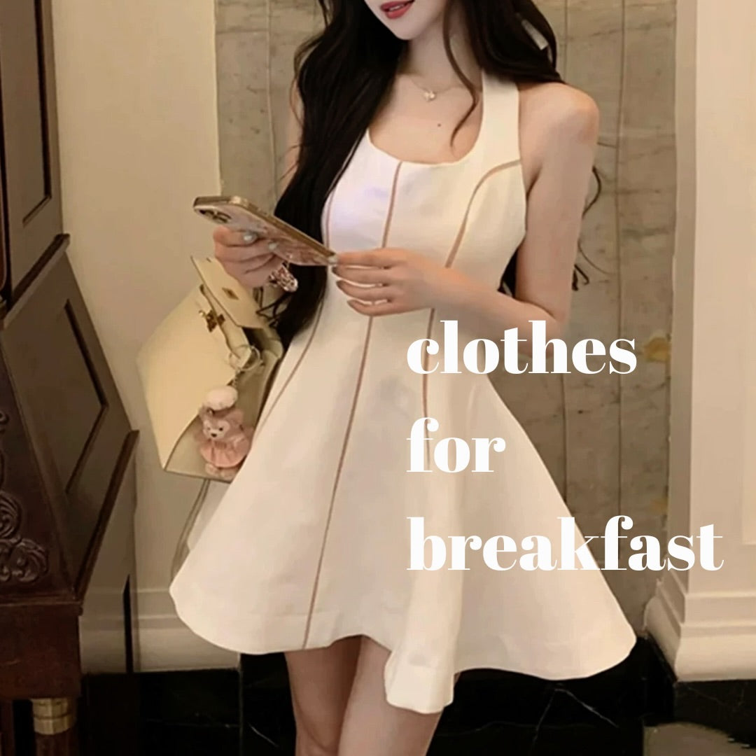 - with self-tie halter straps, straight back above bra-line